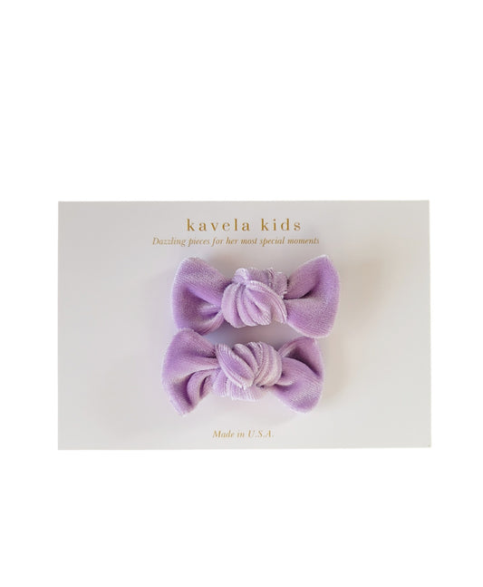 Lilac velvet Knotted pigtail set | Nylon Headband Bow